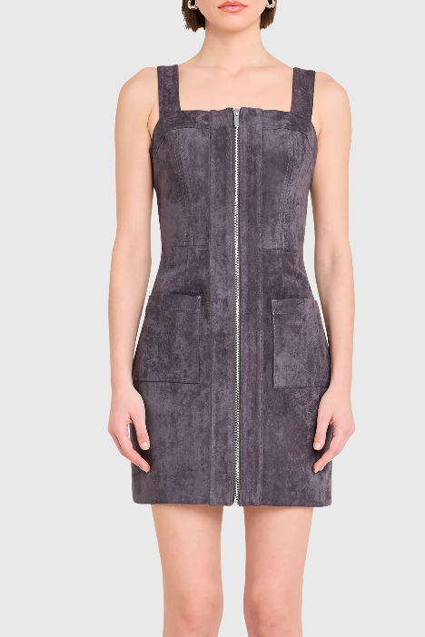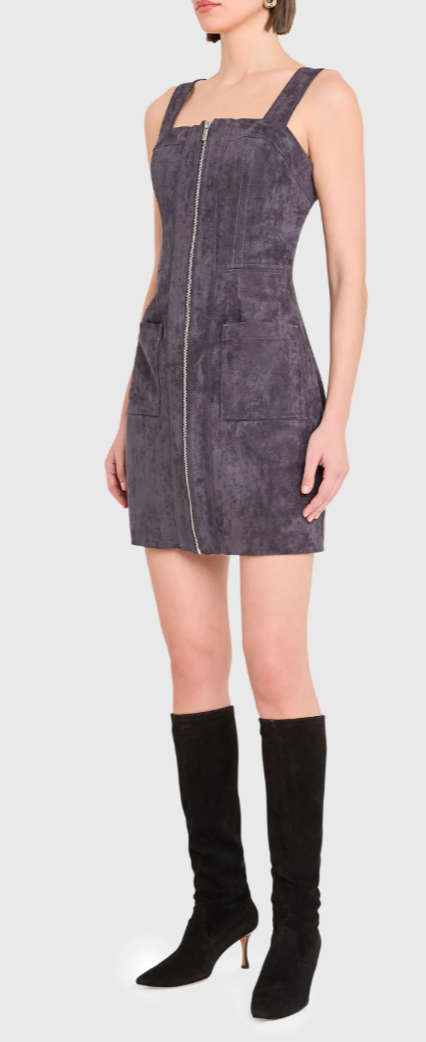 Show up strong in the Becker Dress. Crafted from suede with wide straps and a zipper all the way up the front, it’s got structure with a hint of attitude. Pair with black boots and layer on the Becker Jacket to complete the set.