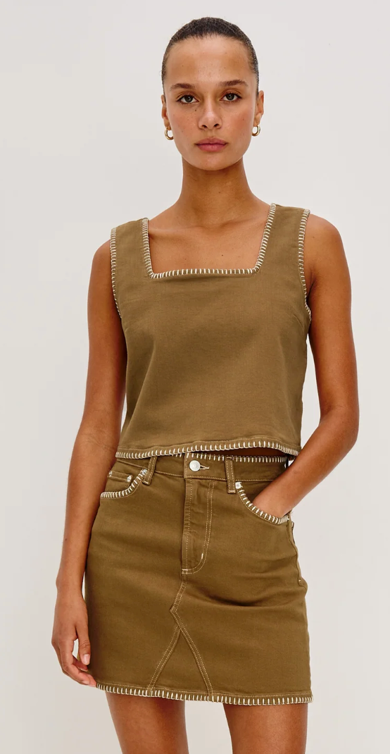 The Carbon is a cropped denim top made from ultra-soft cotton. Featuring a boxy fit, blanket-stitched details, and a hint of stretch, it offers a comfortable, relaxed feel.99% Cotton | 1% Elastane.Imported.