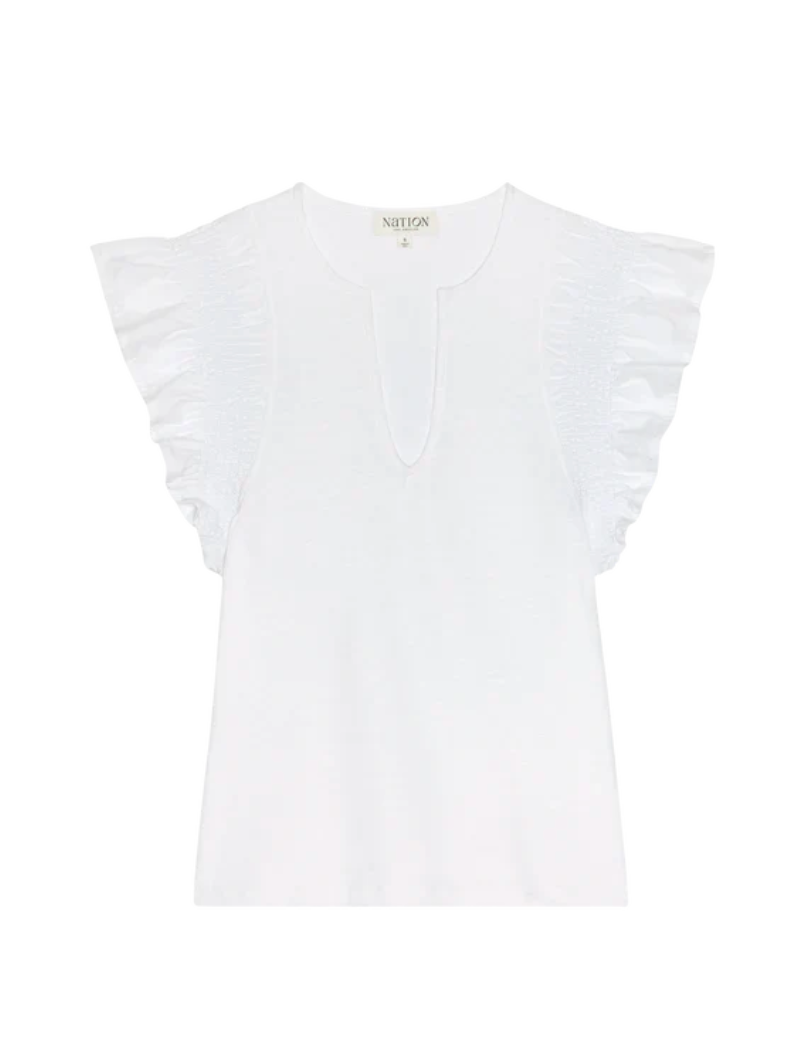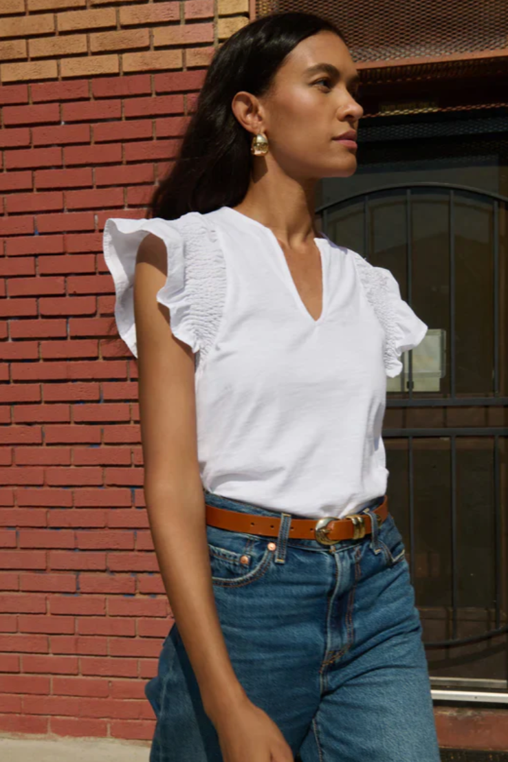 Introducing the Christa Ruffle Sleeve Top - perfect for adding a touch of playful chic to any outfit! With its charming ruffled sleeves, this top will elevate your look with a fun and quirky twist. Step out in style and turn heads wherever you go with the Christa Ruffle Sleeve Top.
