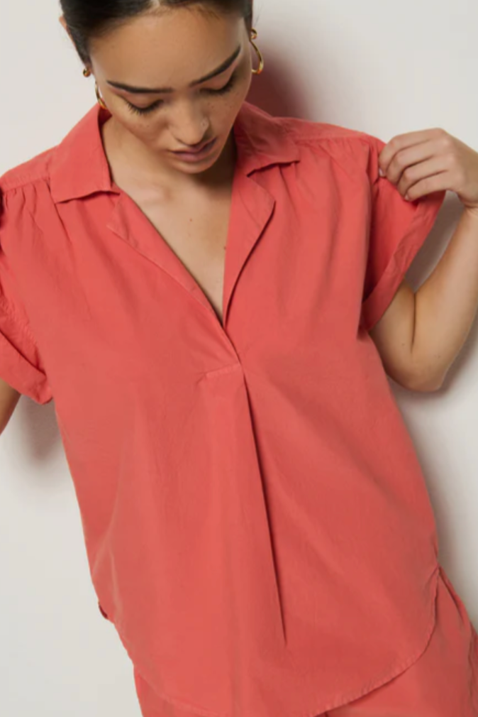 • 100% Pima, Cotton Poplin, midweight, stonewashed for a soft, worn in in feeling