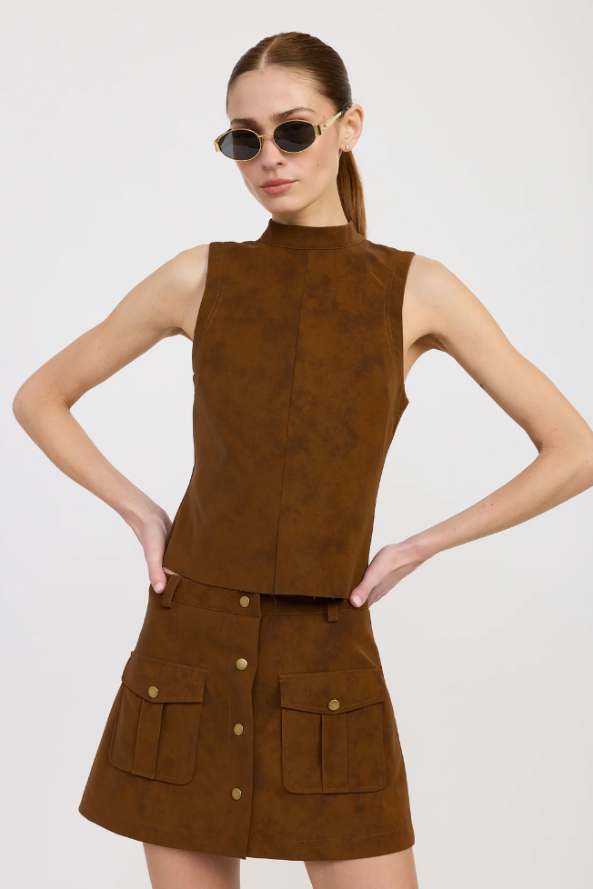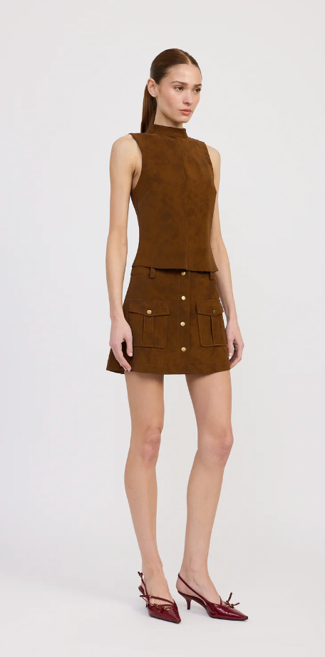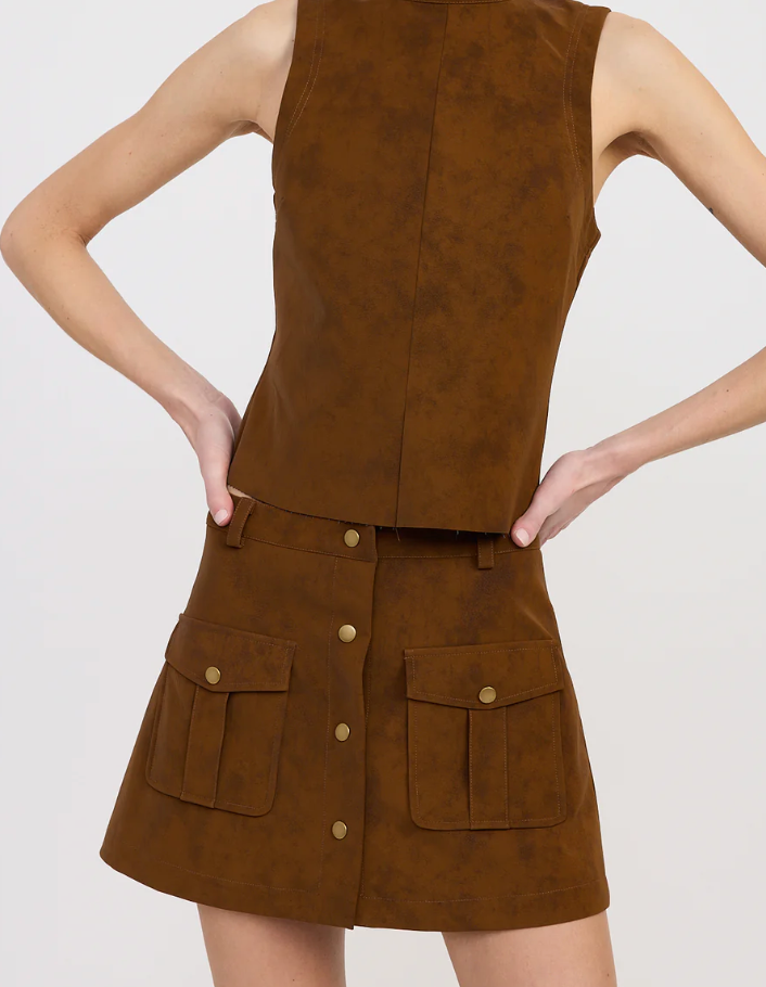 • Path Flap Pocket Snap Button A-Line Mini Skirt