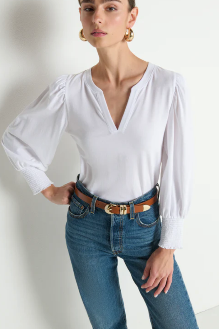 Close to the body for a more contoured silhouette. Size down for a more fitted look, size up for a little more ease.
