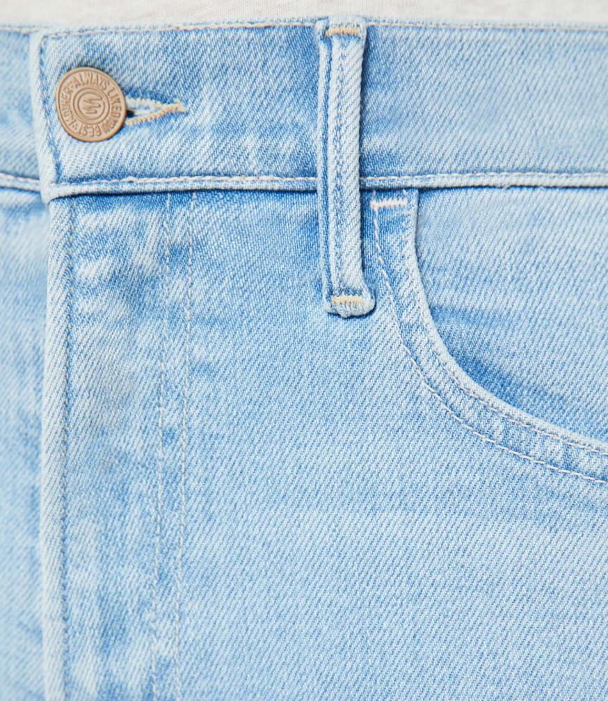 This bestselling high-rise flare has an ankle-length inseam and a raw hem. Made from stretch denim, Ball's In Your Court is light blue with fading throughout.