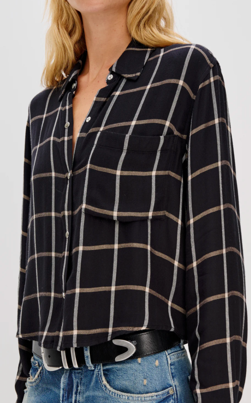 If you love the Hunter, meet the Malin. Cut from our signature ultra-soft rayon with a loose twill weave, this plaid button-down has the same timeless feel—now 5" shorter for a cropped, boxy fit.100% Rayon.Imported.