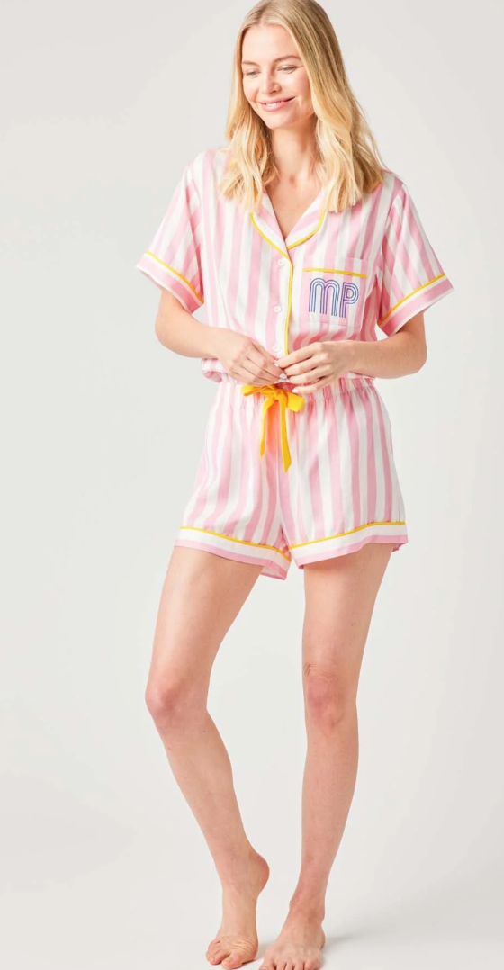 Women’s Pajama Shorts Set — is cut in a timeless silhouette with classic piping detail. The shorts’ elastic waist and adjustable ribbon tie ensure a custom, universally flattering fit. - no monagram