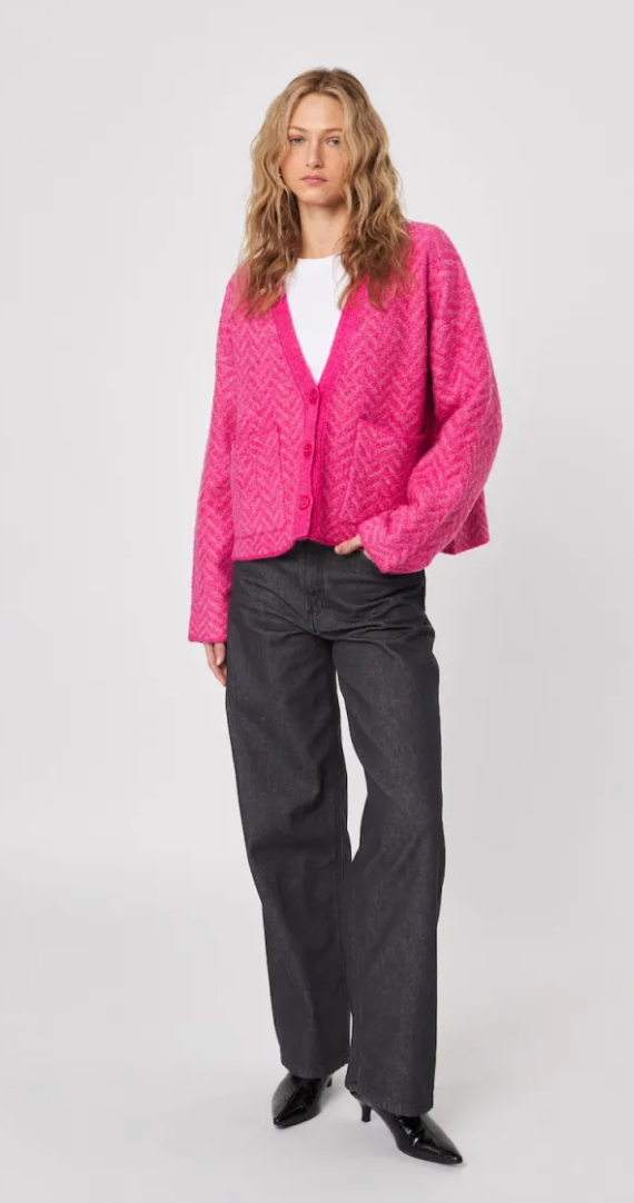This vibrant John & Jenn Ricky Cardi in cerise herringbone features a chic open-front design, perfect for layering over casual or dressy outfits. Made from a soft blend, it offers both style and comfort, making it an essential addition to any wardrobe. The bold color adds a pop of personality, while the classic herringbone pattern ensures versatility. Dress it up or down; this cardigan is ideal for any occasion, ensuring warmth without sacrificing style.