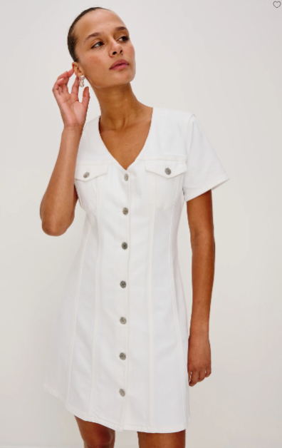 A denim dream dress, the Saratoga is a 90s-inspired button-front mini. Crafted from a comfort-stretch fabrication, it features a form-fitting, A-line silhouette that is instantly flattering.
