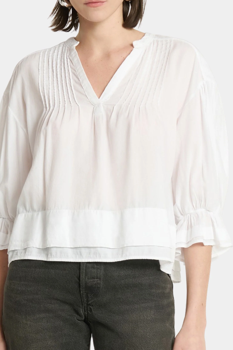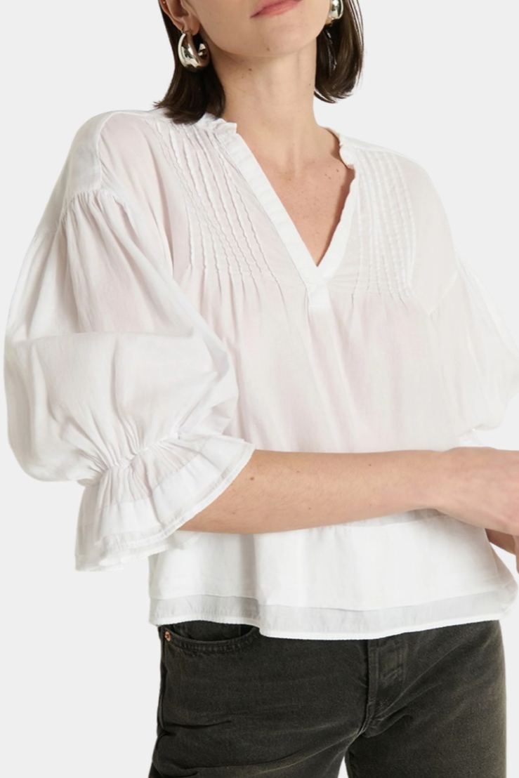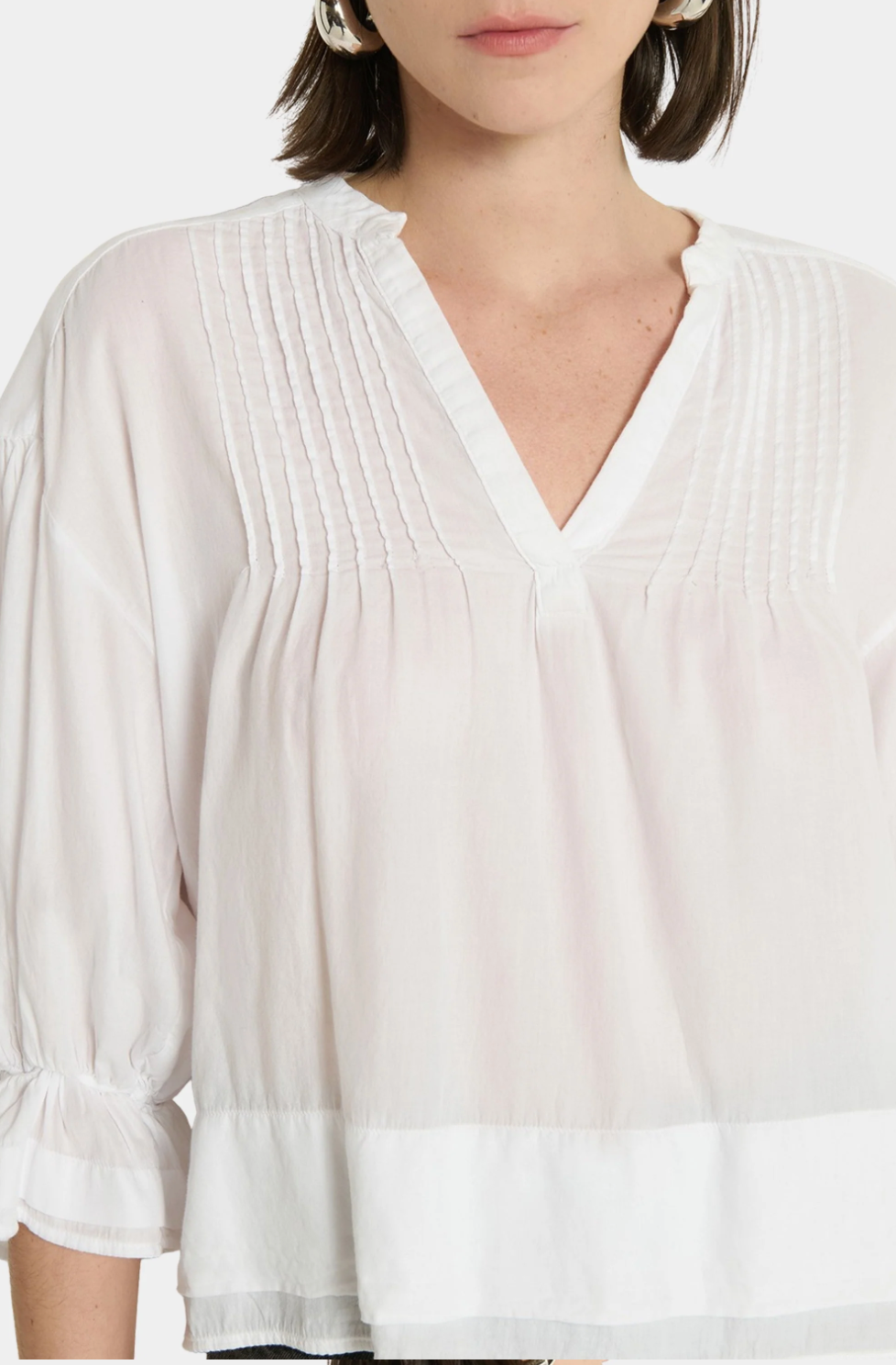 Look chic and feel comfortable in our Scarlet Pintuck Blouse. Made with soft cotton and featuring a flattering v-neck, this relaxed fit blouse is perfect for any occasion. The classic white color and charming pintuck details make this top a must-have for your wardrobe.