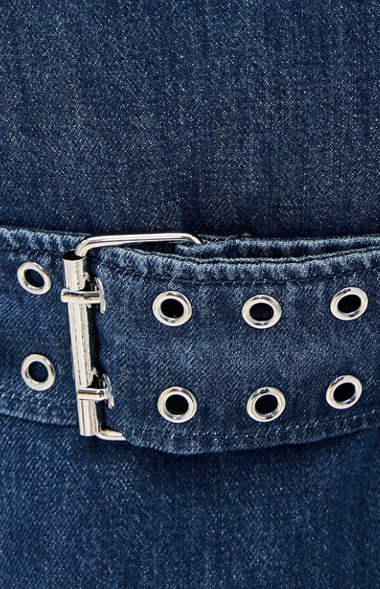 • Optional self-belt at waist with silver-tone grommets