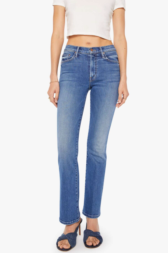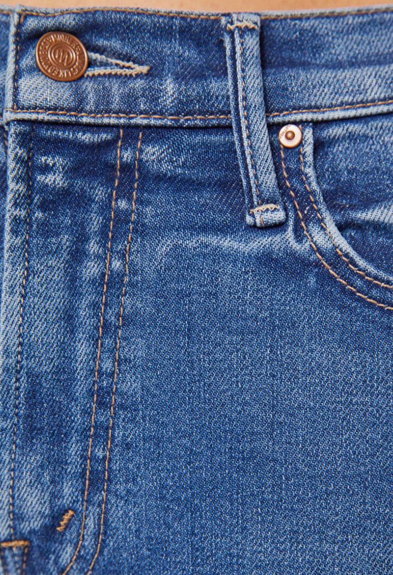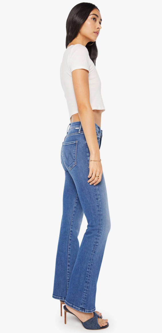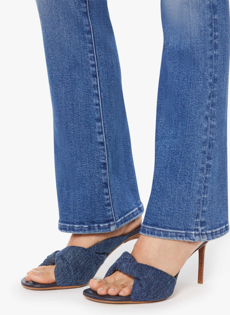 Bench warmers. Narrow flare jeans with a mid rise and a long 31-inch inseam with a clean hem. Made from stretch denim, Dugout Doobies is mid blue with whiskering and fading at the knee.